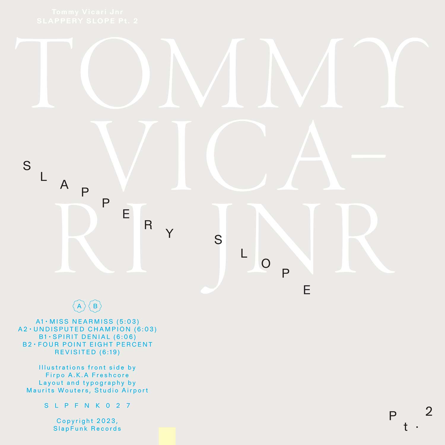 En esta referencia (SLPFNK027), Vicari Jnr demuestra por qué es un maestro del "groove" imperfecto y con carácter. Mientras que la primera parte sentaba las bases, este segundo volumen se siente más nocturno y mental. "Miss Nearmiss" y "Undisputed Champion" en la cara A ofrecen ese sonido crujiente, con glitches y funk robótico que define su estilo. La cara B profundiza con "Spirit Denial" y una revisión del clásico "Four Point Eight Percent", entregando bajos pesados y ritmos rotos diseñados para sistemas de sonido potentes.